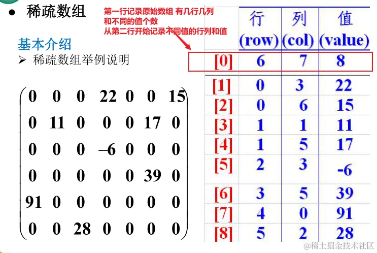 Integer sparseArr[][] = new Integer[sum+1][3] - 将二维数组的有效数据存入到稀疏数组中
