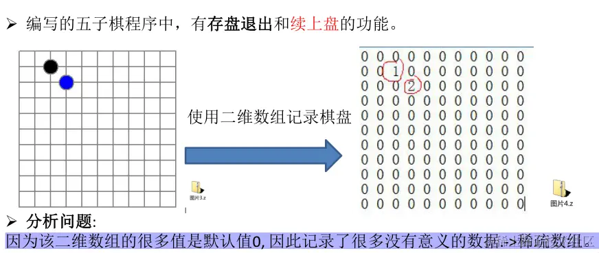 当一个数组中大部分元素为0,或者为同一个值的数组时,可以用稀疏数组来保存该数组。