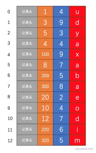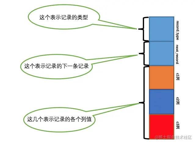 从上图可以看到一条记录可以分为两部分,记录的额外信息和记录的真实数据