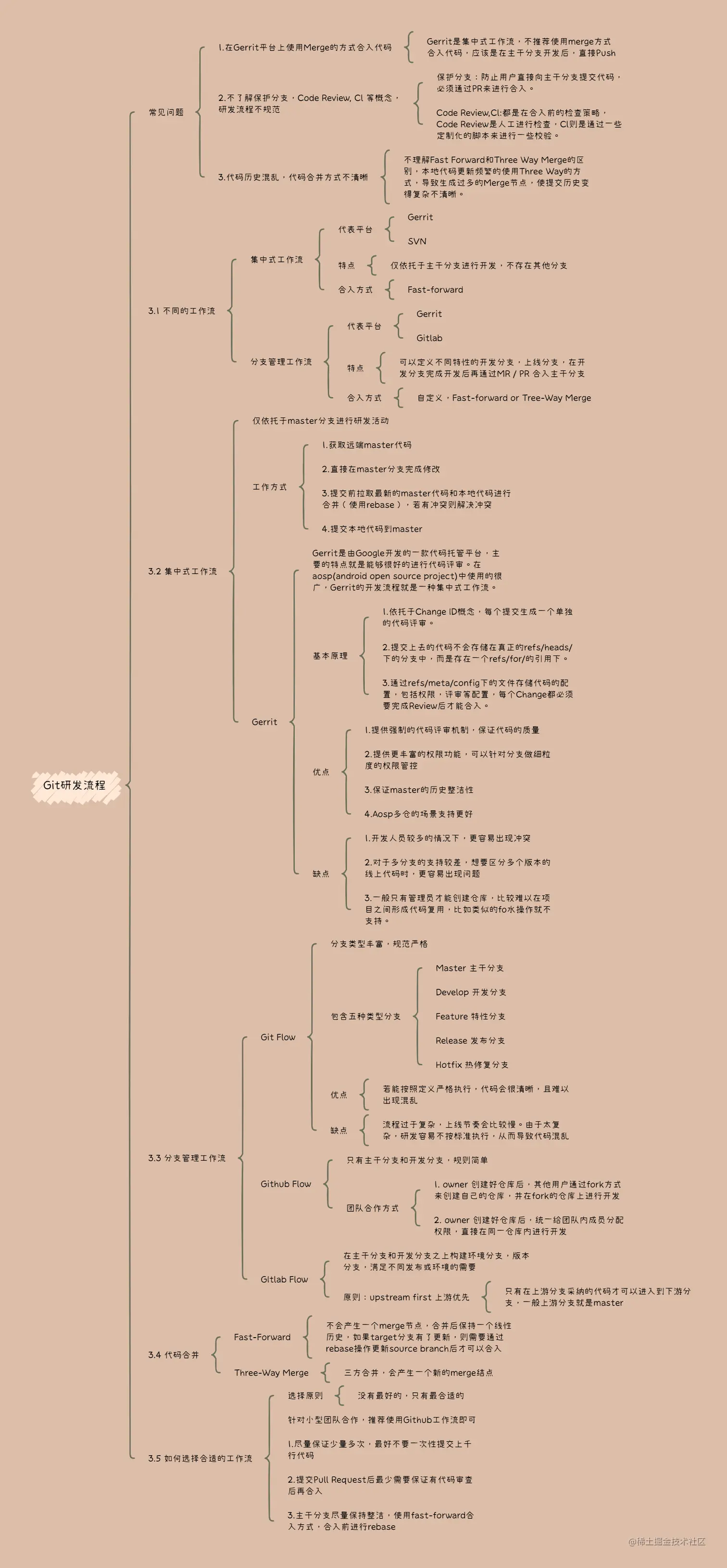 - Gerrit是集中式工作流,不推荐使用merge方式合入代码,应该是在主干分支开发后,直接Push
