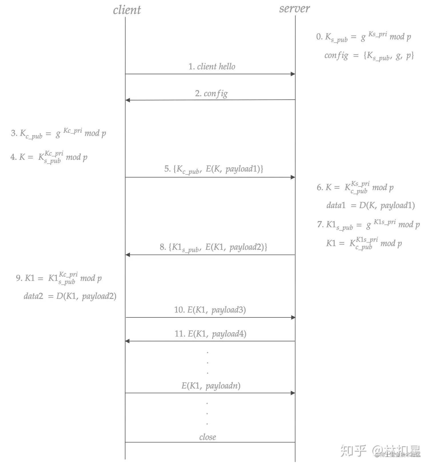不生成K1的算法叫静态DH算法,生成K1的算法叫DHE算法,DHE算法乘法运算太多,一般使用ECDHE算法(基于椭圆曲线ECC算法的)