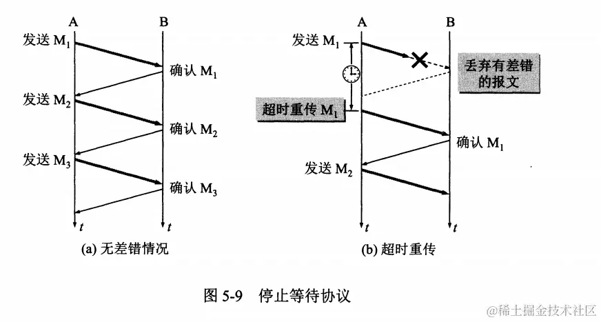 停止等待协议,主要的内容就是,TCP在发送方发送一个数据报之后,都会停止一段时间等待收到接收方发出的确认收到消息,如果没用接收到确认,在一定时间之后发送方就会再次传输该数据,这样每个数据报就能被准确的接收