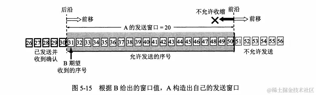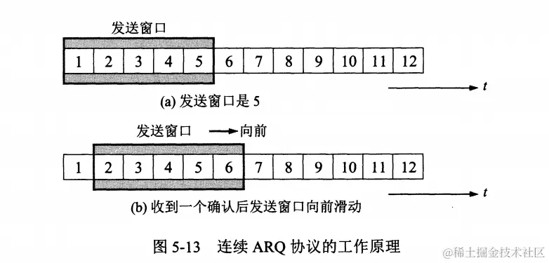 发送方每收到一个确认,就把发送窗口向前移动一个分组的位置。