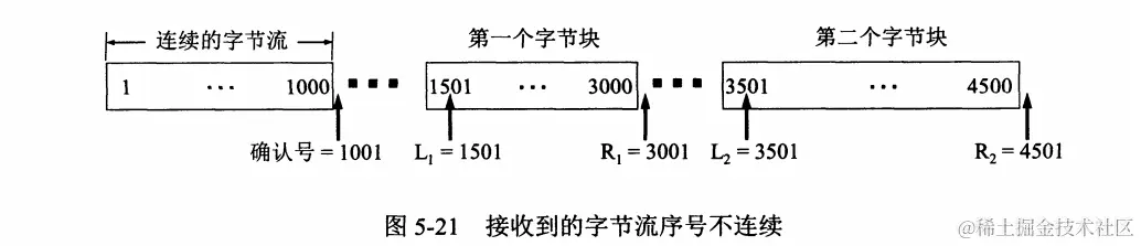 TCP接收方在接收到发来的数据字节流不连续,这就形成了不连续的字节块
