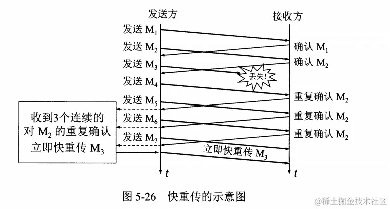 快重传算法要求接收方不要等待自己发送数据时才进行捎带确认,而是要立即发送确认,即使是收到了失序的报文段,也要重复发送对已收到报文段的确认