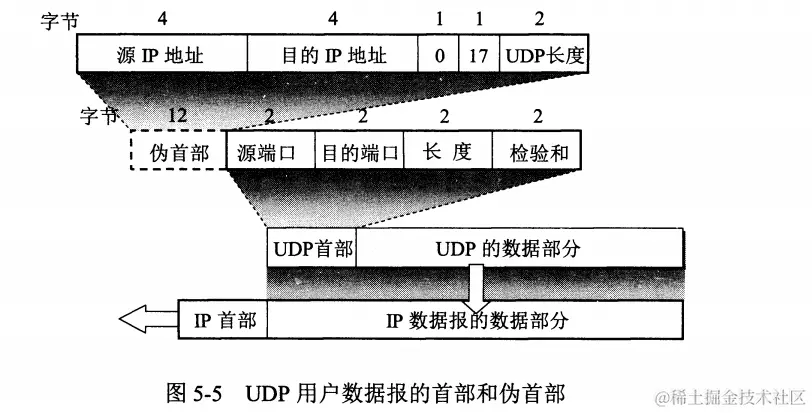 伪首部:用于计算校验和的,既不向下传递也不向上递交(TCP也有类似的伪首部)