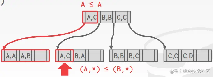 因为B+树是按顺序排序的,所以查找具有快速遍历的特性,也不需要整个key(像数组一样)。并且由于顺序特性,B+树支持准确查找和模糊(前缀)查找。