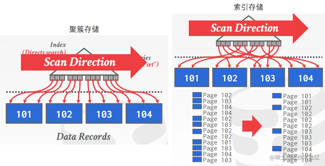 什么是聚簇索引呢,简单来讲就是B+树的page和物理page有对应顺序关系,例如MySQL就是这种方式。非聚簇索引并不是不好,而是可以简化设计。