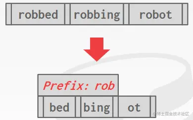 大多数情况下,当我们在同一个节点中有键时,每个键的某些前缀都会有部分重叠,只需在节点的开头存储一次前缀,然后只在每个插槽中包含每个密钥的唯一部分,直观理解如下图所示。