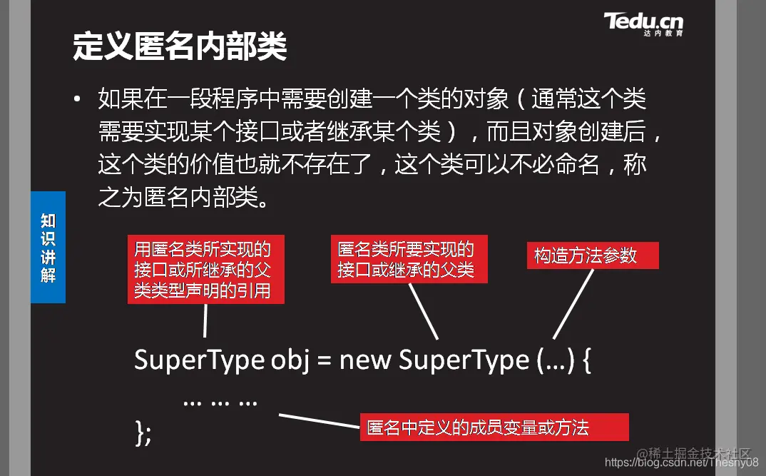 如果在一段程序中需要创建一个类的对象(通常这个类需要实现某个接口或者继承某个类),而且对象创建后.这个类的价值也就不存在了,这个类可以不必命名,称为匿名内部类.