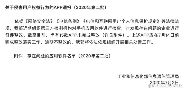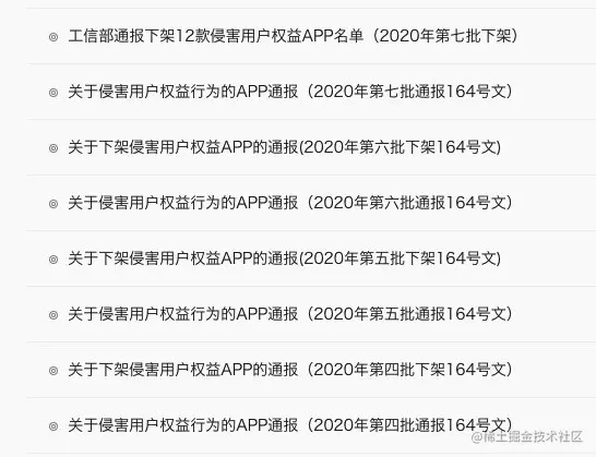 自 2020年以来,工信部对存在侵害用户权益行为的 APP 进行了分批的检测。