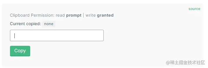 - 从权限 Permissions API 获取权限之后,才能访问剪贴板内容。
