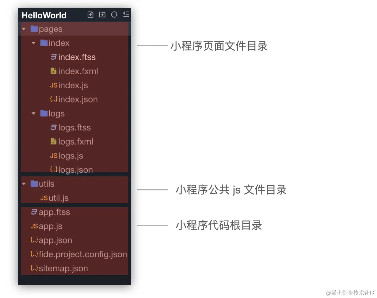 在这里,我们同样以前文新建的「HelloWorld」小程序的文件空间示例,进行讲解。