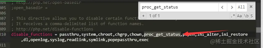 最后长这样:disable_functions = passthru,system,chroot,chgrp,chown,popen,ini_alter,ini_restore,dl,openlog,syslog,readlink,symlink,popepassthru,exec