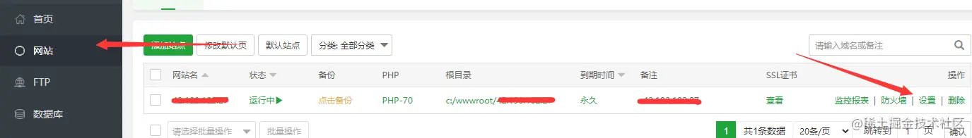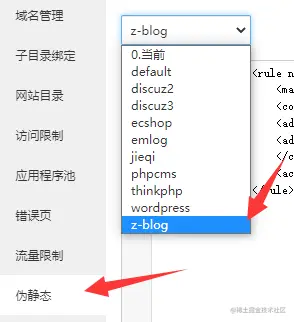 第二个设置重写规则,点击左侧的网站,点击设置,选择伪静态里的z-blog然后保存