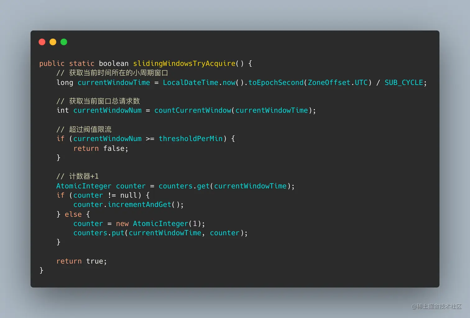 - 窗口数据统计请求量时,只需要把时间窗口外的元素舍弃,集合中剩余的元素数量之和便是结果