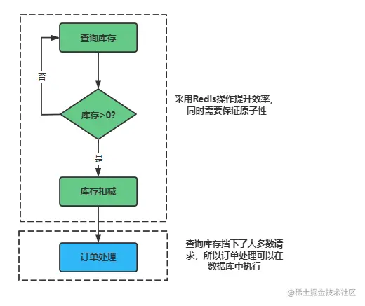 了解这些后我们其实也就知道了Redis主要在秒杀进行中起到作用,Redis只要处理好库存查询以及库存扣减的功能就能保证秒杀的正常运行,但我们需要注意库存查询和库存扣减操作需要保证原子性,