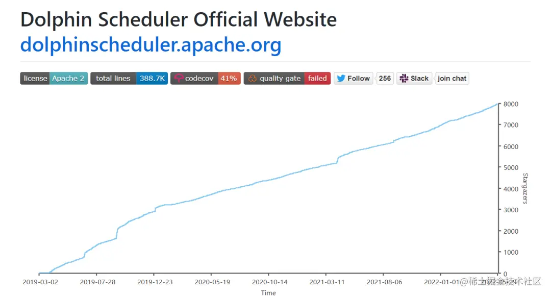 本周伊始,Apache DolphinScheduler 项目在 GitHub 上的 Github Star 总数首次突破 8K。目前,Apache DolphinScheduler 社区已经拥有 Contributor 345+,fork 数 3k+,社区发展呈现出一片欣欣向荣。