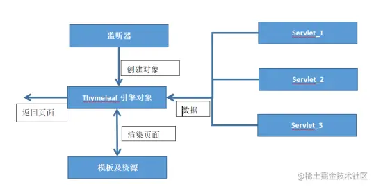 Thymeleaf是一个后端的引擎,需要启动后才能对我们的页面进行渲染,因此我们要在服务器启动时同时启动Thymeleaf引擎。在Servle中三大组件都可以完成这个任务。