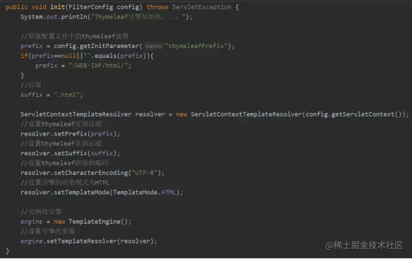 其二可以使用Servlet的过滤器来完成Thymeleaf引擎的启动和调用,配置如下: