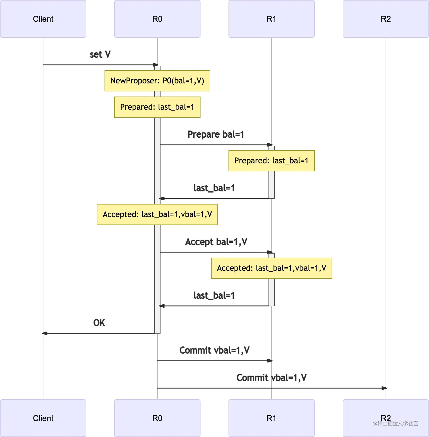 - R0 到 R1 的过程中,要带上用户要提交的值,以便在 R1 上 Prepare 成功后直接运行 Accept;