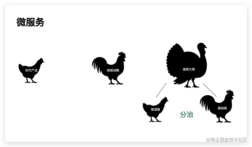 所以微服务是通过多个小型服务组合来构建单个应用,拆成小的服务后,系统的服务复杂度是不是低了,可以自己管自己了,也可以在每个服务用不同的语言,让不同的团队负责不同的服务等等。