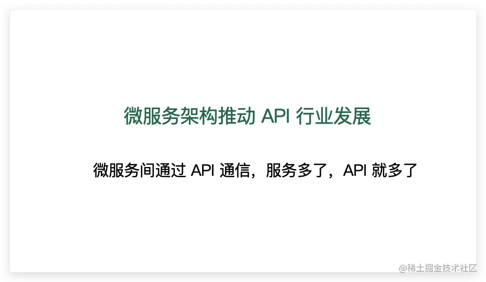 这些微服务间沟通交流的方式就是 API ,微服务架构下服务多了,API 自然就多了。