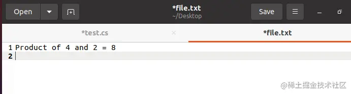 在上面的代码中,我们已经在代码中初始化了3个整数变量,并为其中两个变量赋值,而第三个整数则被说明是前两个整数的乘积。之后,我们使用 "Write() "方法将这些变量插入并保存到文本文件中。