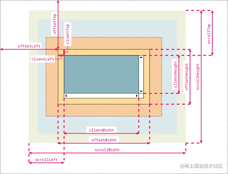滚动尺寸: 提供了元素内容滚动距离的信息。