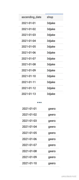 从上面图片的第一部分**(源数据集**)可以看出,在选定的日期范围内,我们有缺失的日期和每个店铺级别的相应数值。