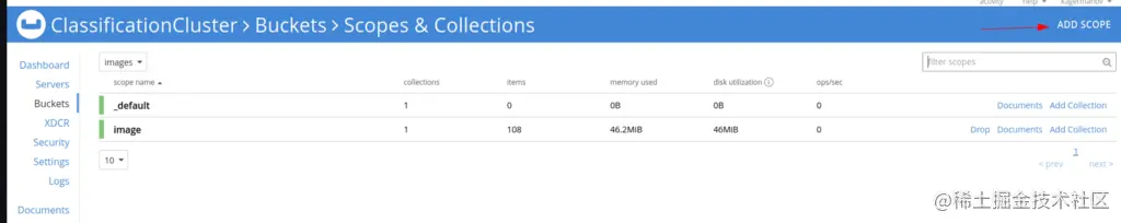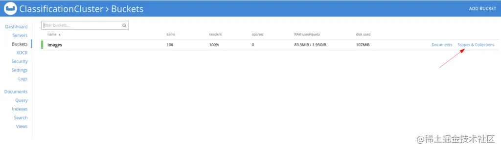 现在,你需要通过Scopes & Collections按钮在这个桶中添加一个范围和集合。