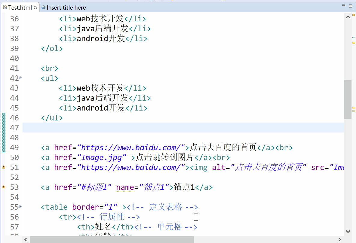 <br>换行符等;(html是一门语法不严谨的语言)- HTML标签不区分大小写,为了方便阅读,建议使用小写。