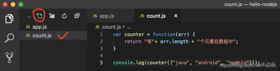 count.js我们需要在里面这么写,如下: