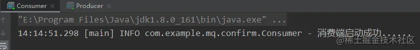 启动 RabbitMQ Service,运行 Consumer 和 Producer,观察控制台打印: