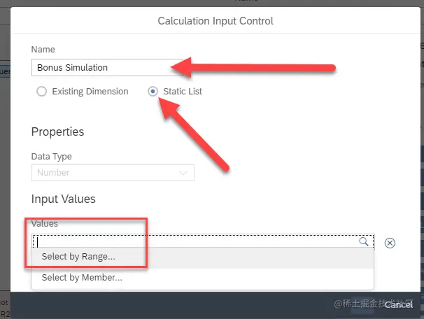 我们使用一个 "静态列表",在下一步我们选择 "按范围选择"。