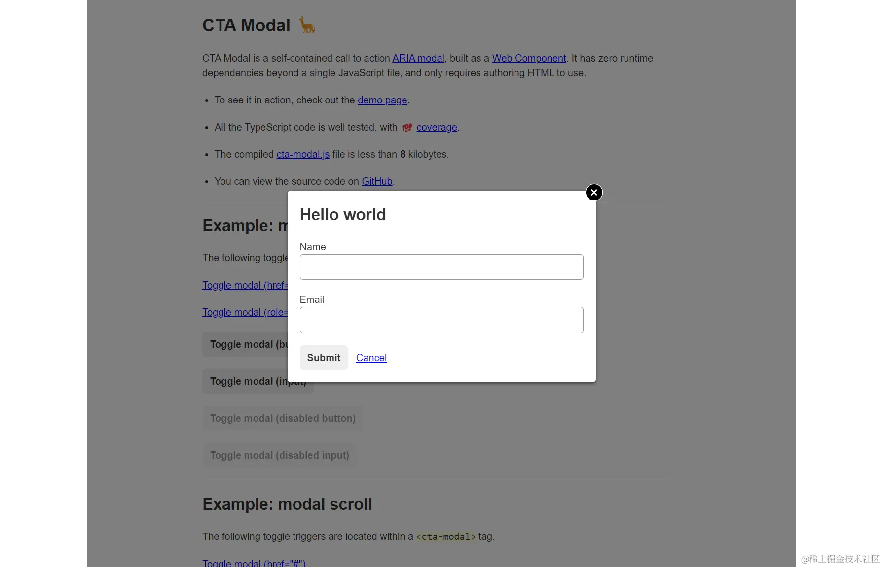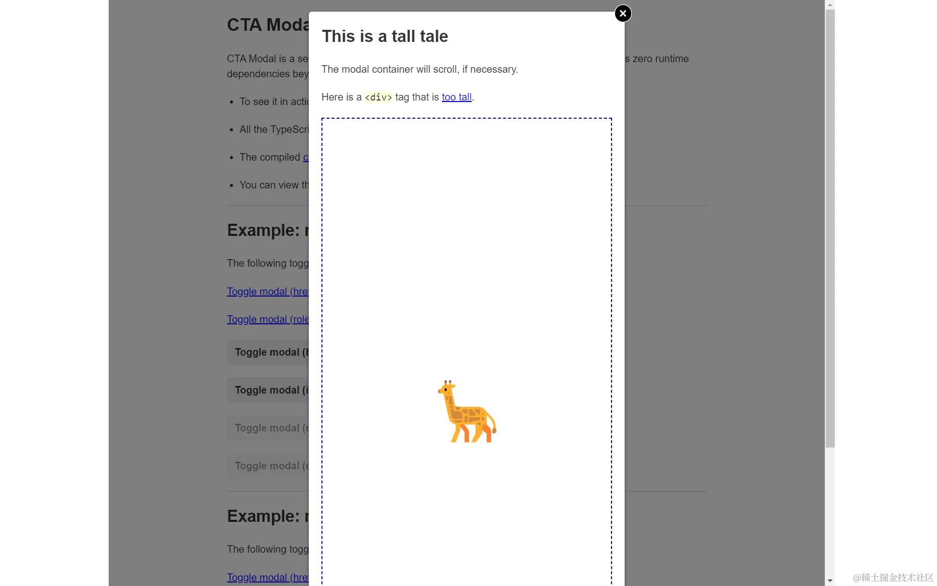 作为参考,我将参考这个代码例子-- cta-modal.ts.