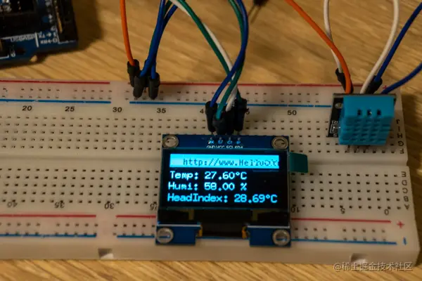 前面我们已经了解了如何分别使用温湿度传感器和 OLED 屏幕,现在我们只需将它们组合起来。