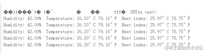 上传到开发板后打开我们的 Serial Monitor 即可看到 Arduino 正在回传温湿度信息: