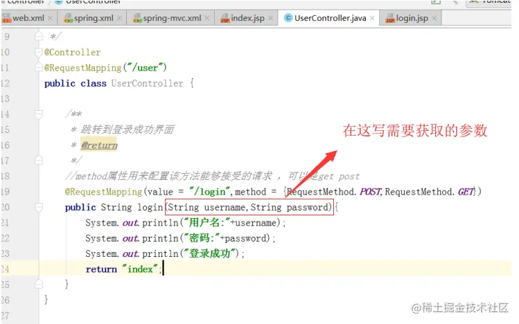 在形参中不光可以获取HttpServletRequest对象 ,也可以获取到HttpServletResponse ,HttpSession对象 在整合SSM框架中,前端传参跟后台接收参数之间的问题,容易遇上的坑。 SpringMVC在controller层接收后台参数几种方式: 1.通过HttpServletRequest接收请求参数;