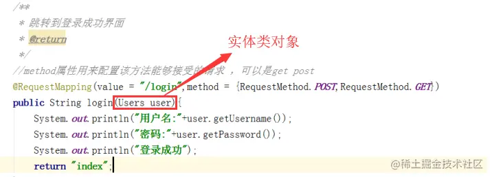 在前端的表单中信息是特别多的,使用@RequestParam注解将参数数据映射到参数中,显然是不友好的;所以可以直接使用实体类接收参数(多条数据可以使用list集合,也可以使用数据形式)。