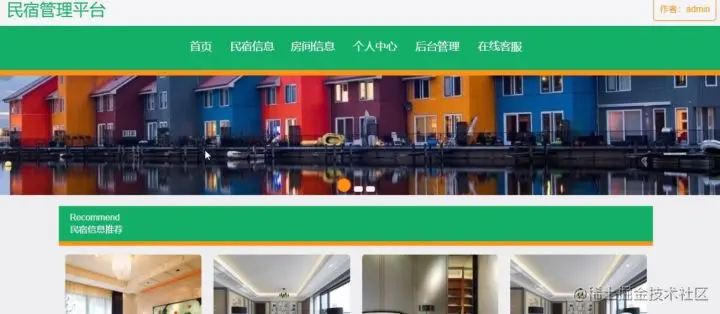 前台首页,在系统首页可以查看首页、民宿信息、房间信息、个人中心、后台管理、在线客服等内容,如图5-14所示。