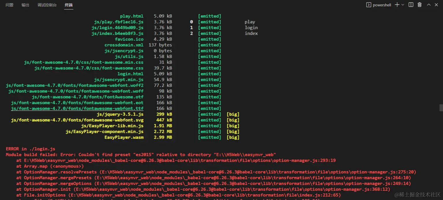 在使用及测试过程中,EasyNVR打包出现报错“ERROR in js/index.f3413765.js from UglifyJs”,如下: