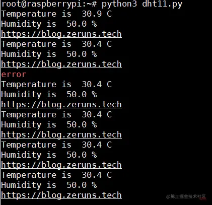 树莓派4使用Python通过GPIO从DHT11温湿度传感器读取数据