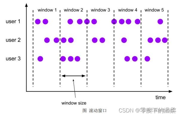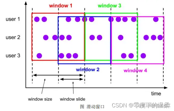 滑动窗口是固定窗口的更广义的一种形式,滑动窗口由固定的窗口长度和滑动间隔组成。