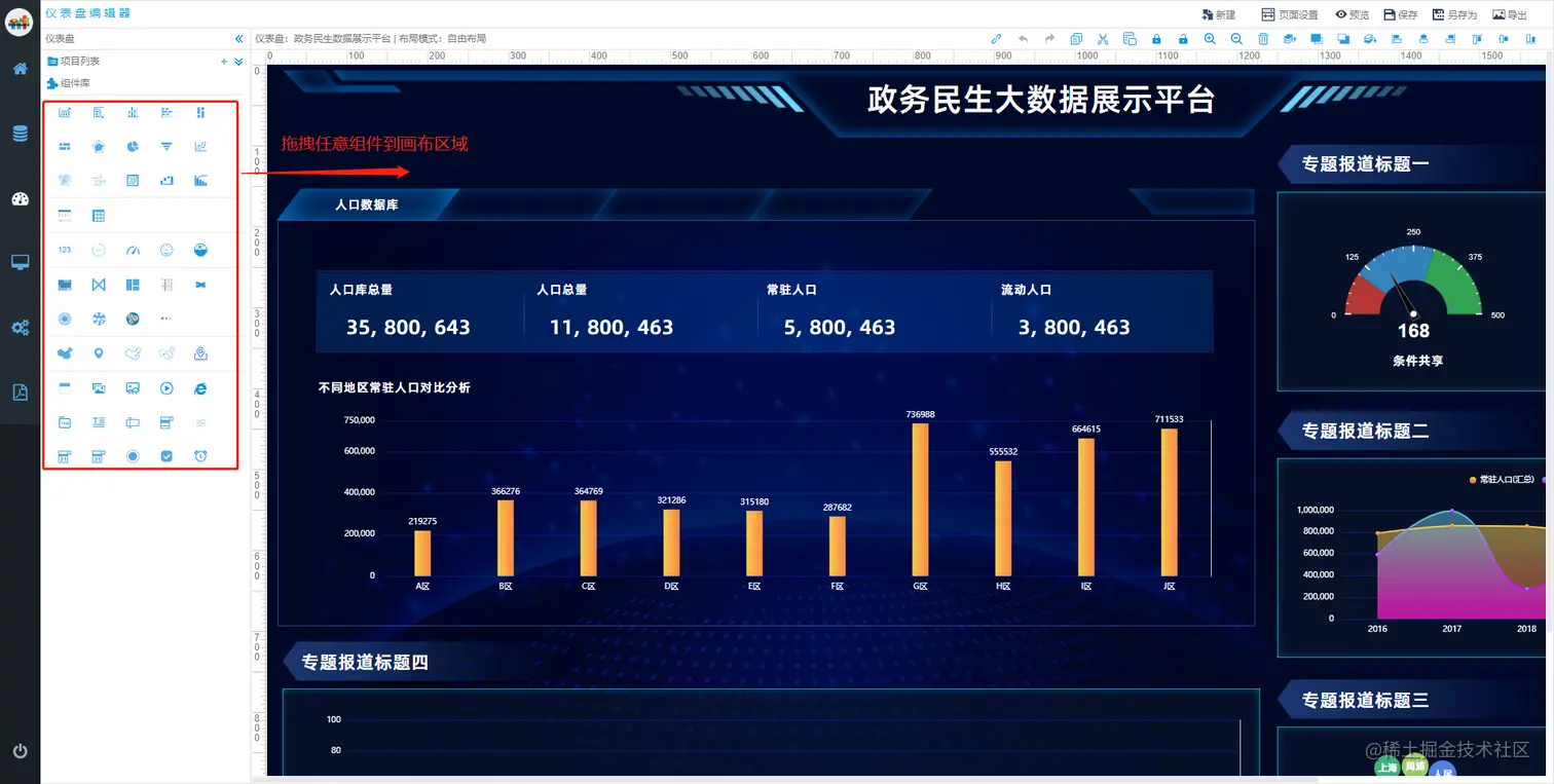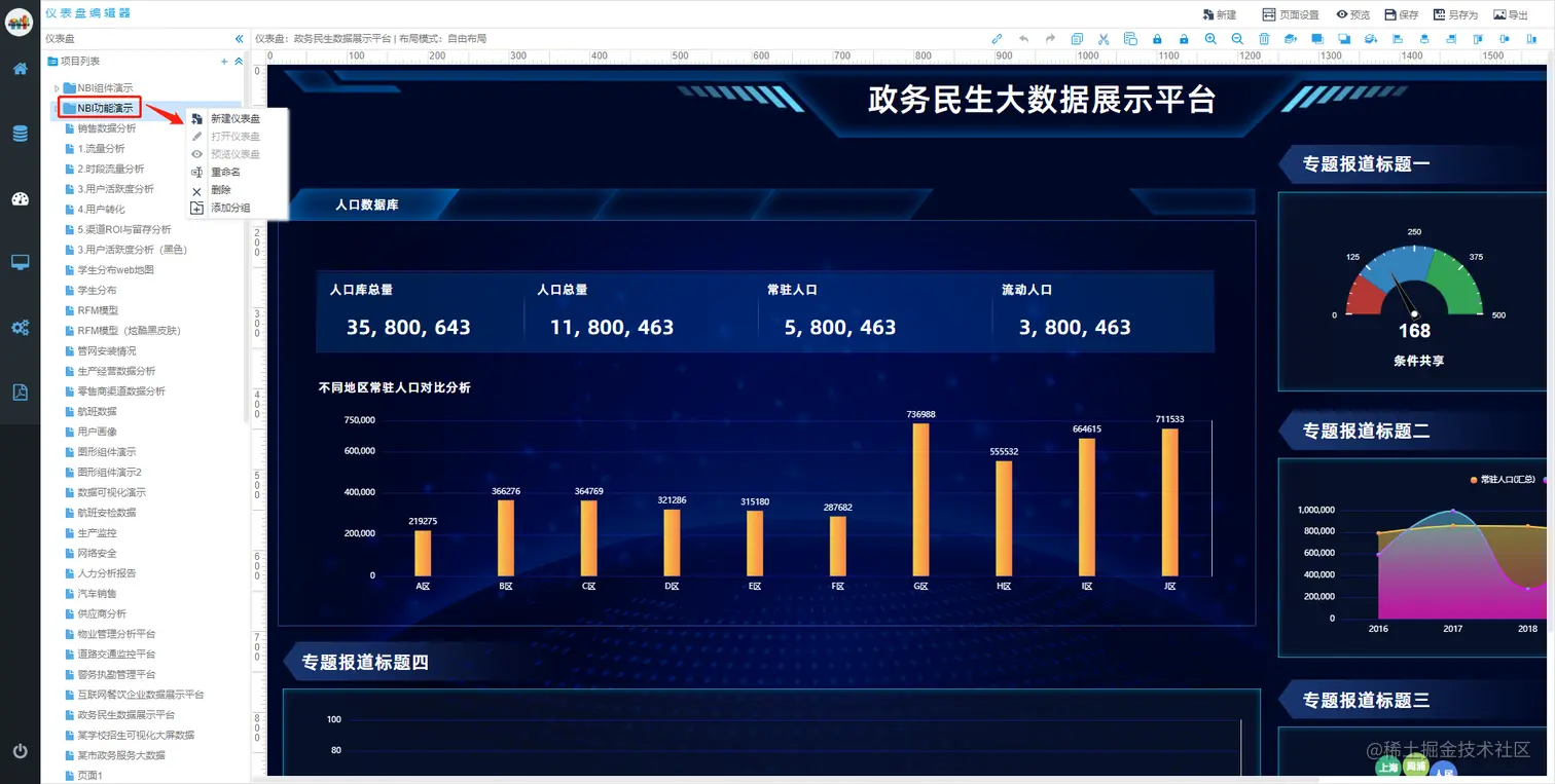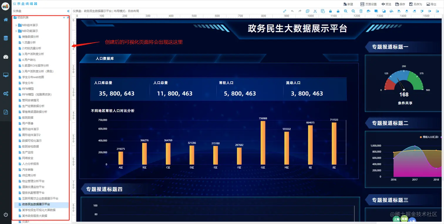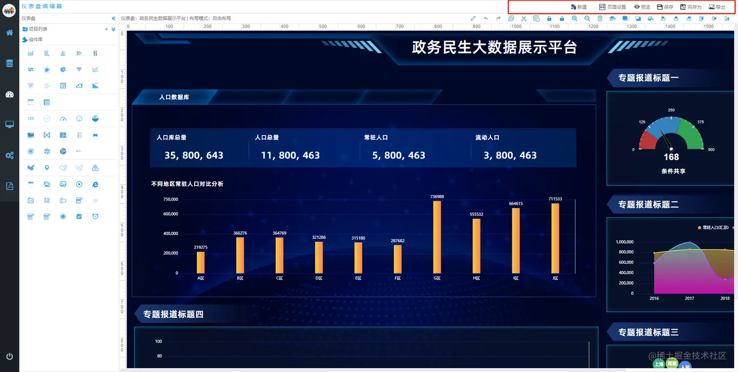 · 预览仪表盘(制作后预览效果,预览地址为永久地址,固可以挂载到第三方系统中);