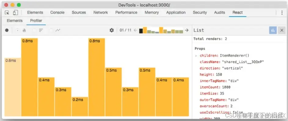 另一类 Profiler组件 则能够展现组件渲染生命周期中的各种详细信息。