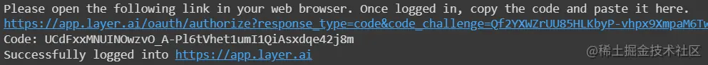 需要有连接笔记本和API的钥匙,为此只需点击输出中Layer给出的点击,并将代码复制到剪贴板上,然后粘贴到输出门户中。