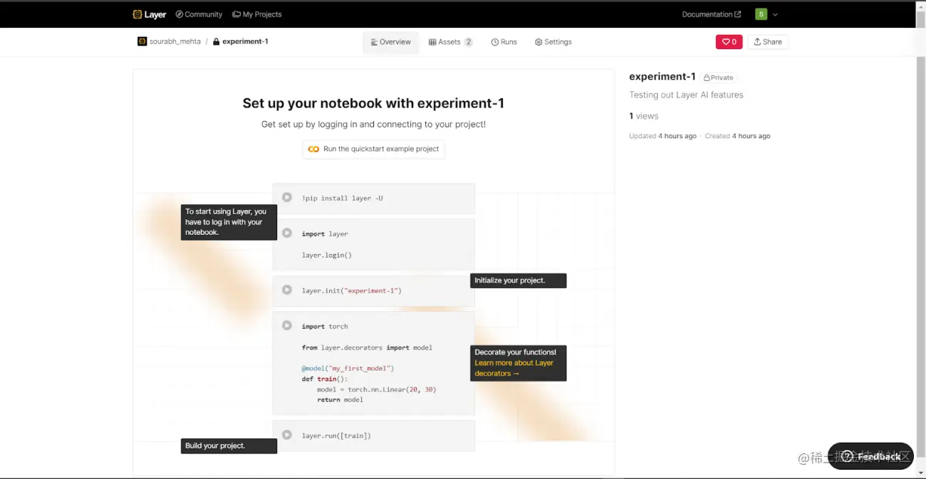 一旦在Layer AI的网页上完成了注册,就可以创建一个项目,然后将笔记本连接到Layer上。