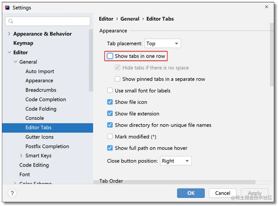 开发时可能会打开很多文件,默认情况下会堆积在一行显示,右侧通过箭头筛选的方式选择其他文件,开启该配置以后所有文件可以多行显示在头部方便查看。