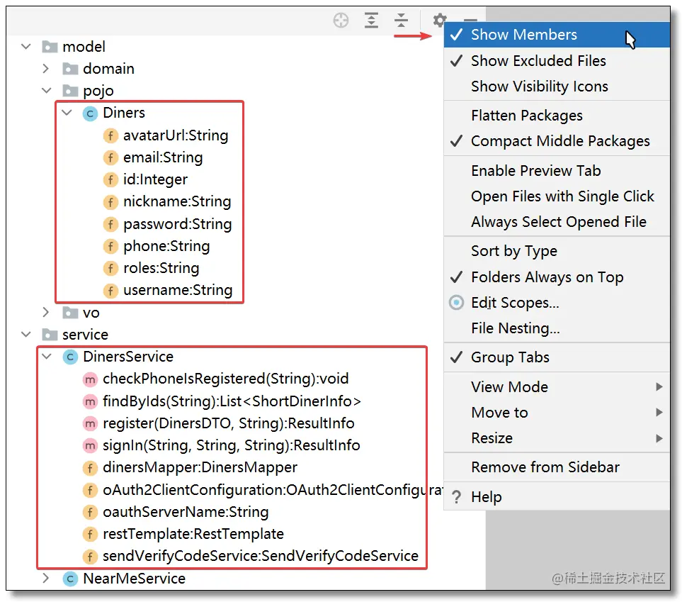 勾选 Show Members 可以显示类的方法和属性,鼠标点击对应的方法或属性可以快速打开并定位。